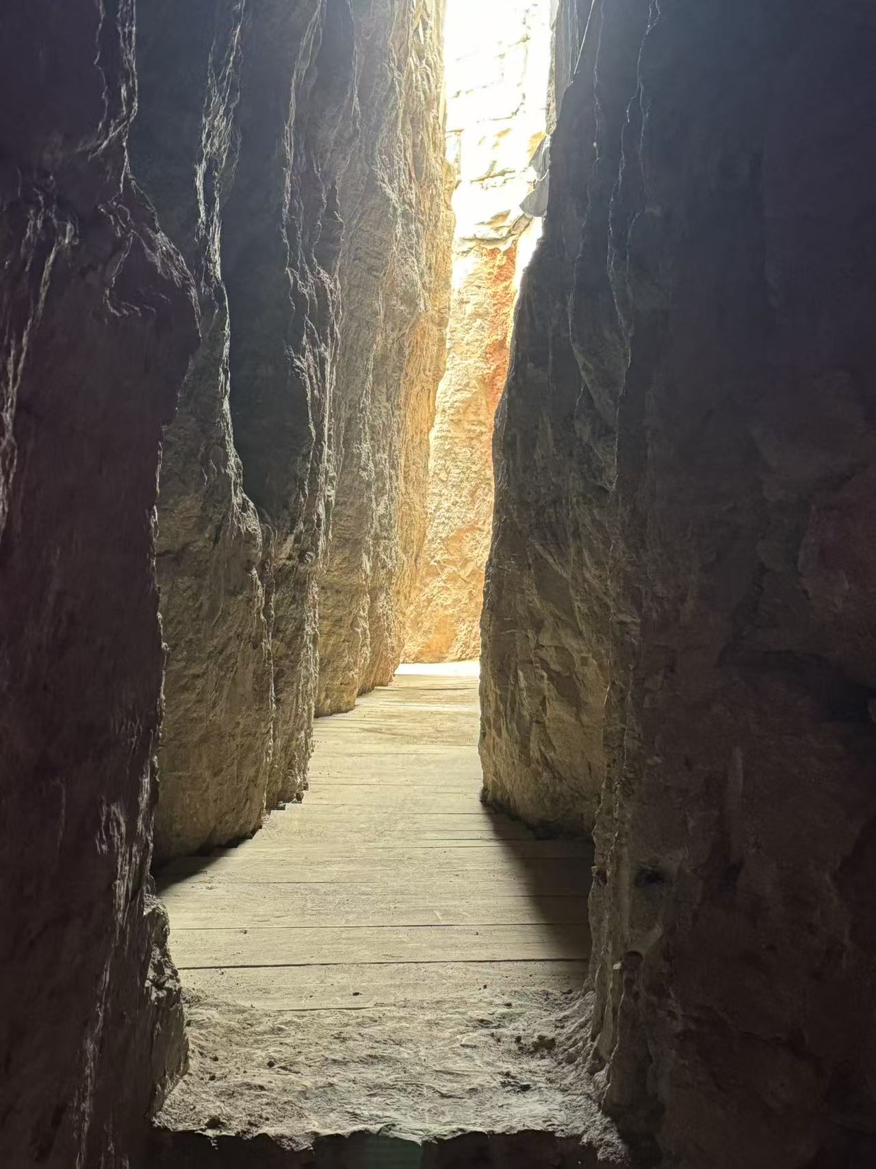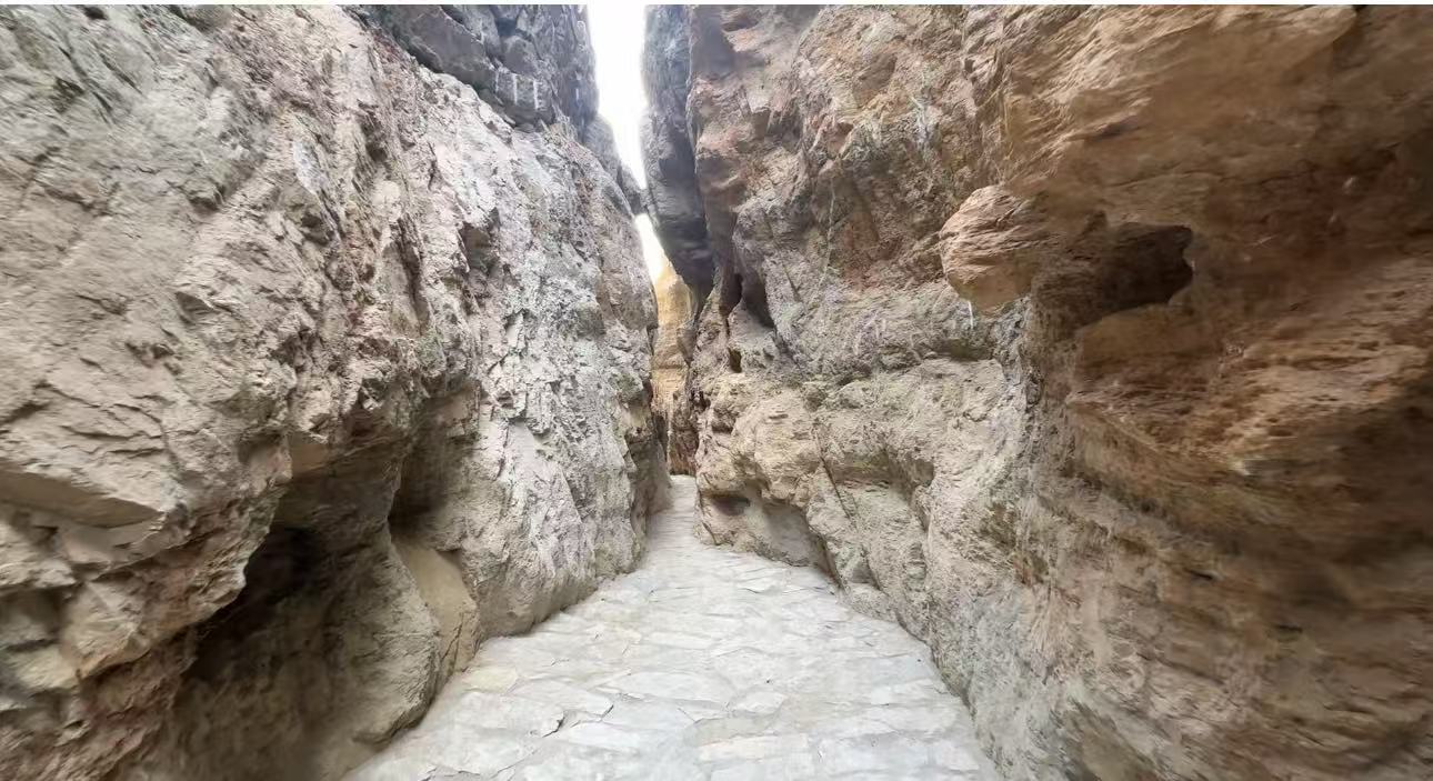 走出溶洞,眼前豁然开朗,一道壮观的“一线天”映入眼帘。这是天然形成的山体裂缝,两侧的山峰高耸入云,中间仅留下一道狭窄的缝隙,阳光从缝隙中洒下,形成一道道金色的光线,仿佛是大自然精心绘制的一幅画卷。站在此处,你会被大自然的磅礴气势所震撼,深刻感受到人类在自然面前的渺小与敬畏。