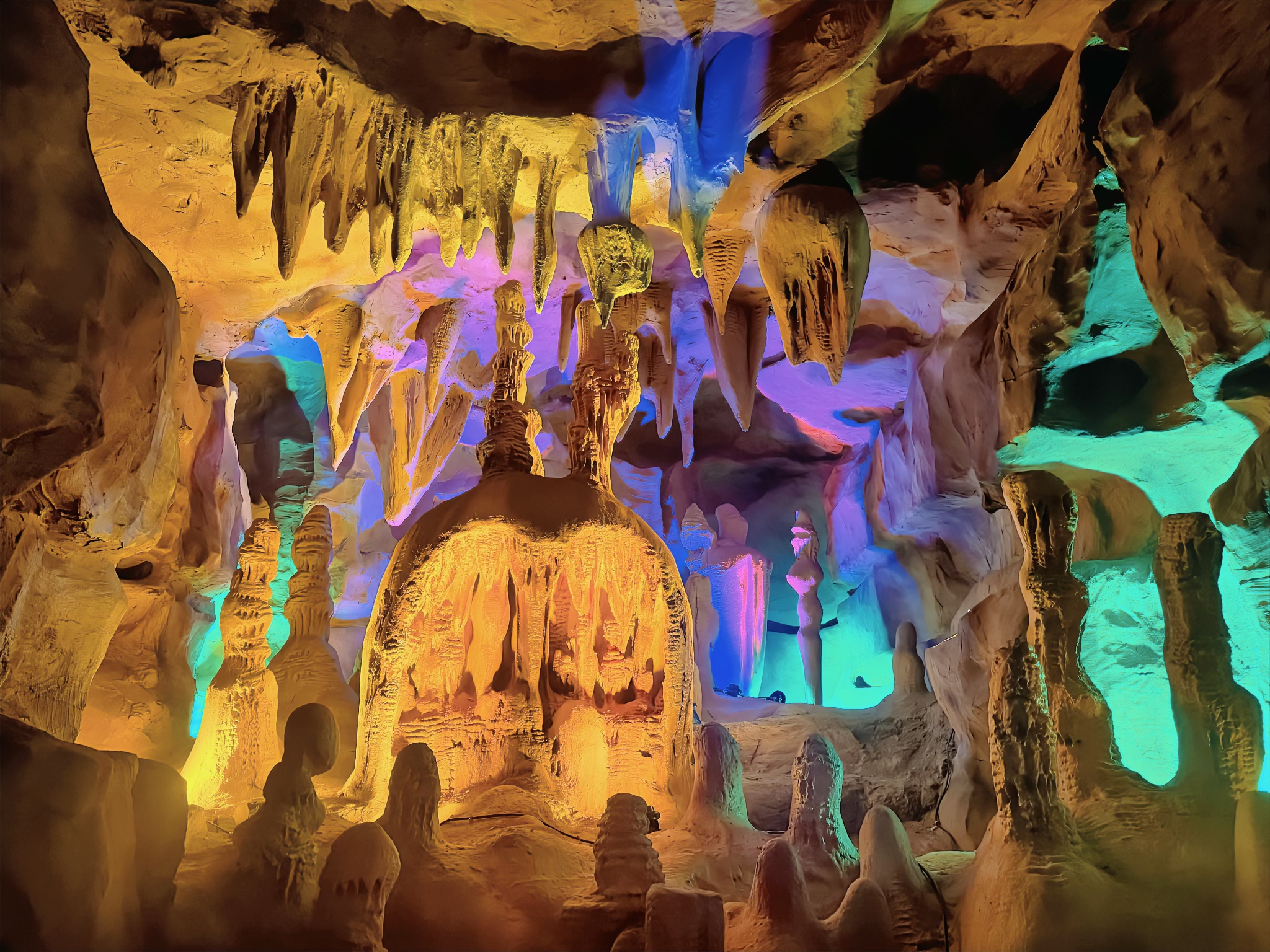 大裂谷的形成堪称大自然的神奇杰作。它是在天然地质裂缝的基础上,经过科学严谨的规划,以及独具匠心的艺术化亮化与美化工程,精心打造出了一条全长约2公里的沉浸式游览廊道。当你踏入其中,仿佛穿越了时光隧道,开启了一场梦幻般的地心之旅。