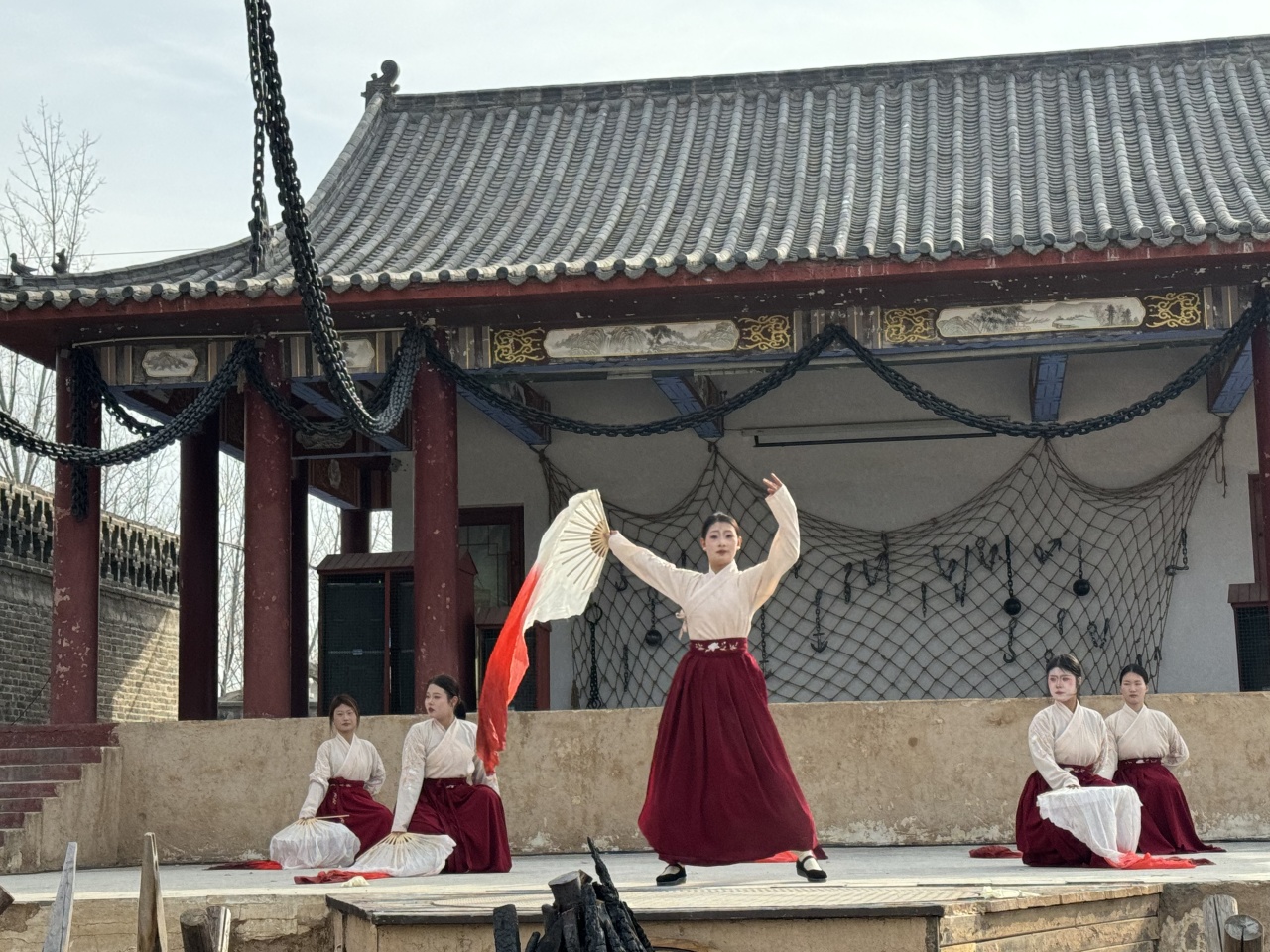 跟随演出的节奏,来到热闹非凡的大舞台,仿佛踏入了一个时空隧道。这里,杂技演员们带来惊险刺激的杂技表演,并与游客进行精彩互动,让您近距离感受杂技的魅力。紧接着,舞蹈演员们呈上优美的《囚笼之舞》,用灵动的身姿演绎出动人的故事。演出结束后,大舞台还准备了各种趣味游戏互动,游客朋友们可尽情参与。若游戏挑战成功,NPC 会为您发放相应的秦半两币,集齐一定数量后,便可找工作人员兑换精美小礼品,为游玩增添一份惊喜。