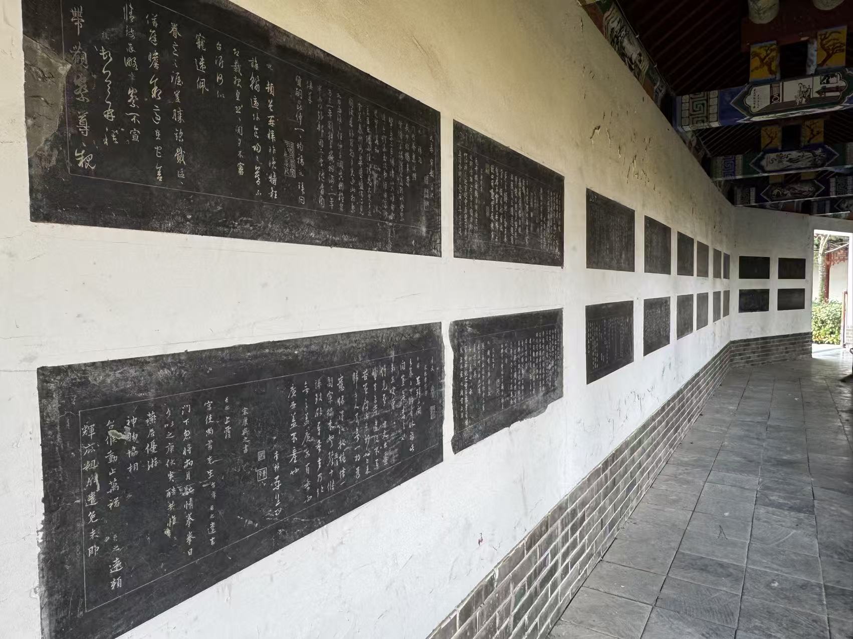 走进书院,一座亭子里的石幢格外引人注目,上面复刻的是颜真卿的颜体多宝塔八面碑——“八关斋”。颜体的雄浑大气在碑刻上展现得淋漓尽致,站在碑前,既能感受书法艺术的魅力,又能在书院的静谧中,生出对读书治学的敬畏之心。