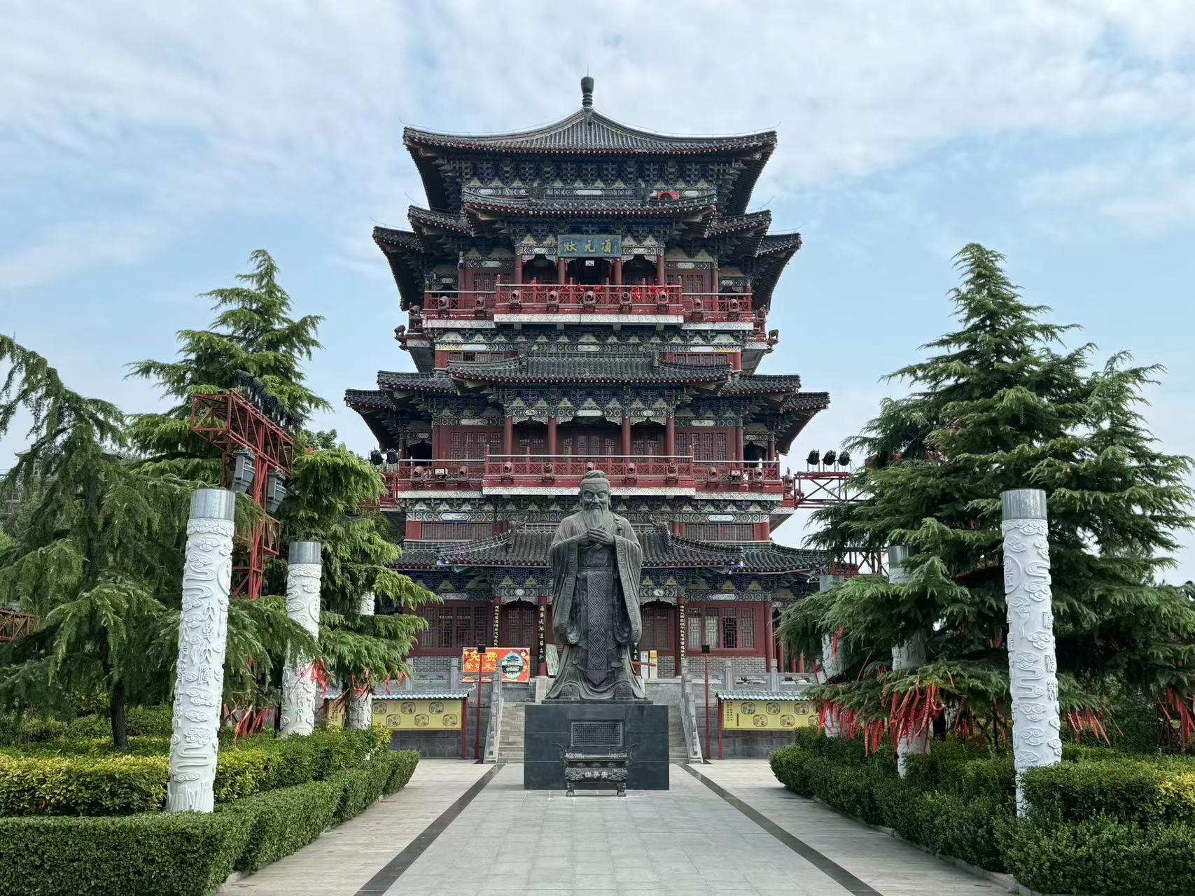 状元楼前的景象,更是让人驻足良久——一尊高约7.3米的黑色孔子立像巍然矗立,圣人面容慈祥肃穆,目光仿佛穿越千年,凝视着后世传承文脉的人们。雕像两侧,六根洁白石柱傲然挺立,分别镌刻着孔子倡导的“礼、乐、射、御、书、数”。