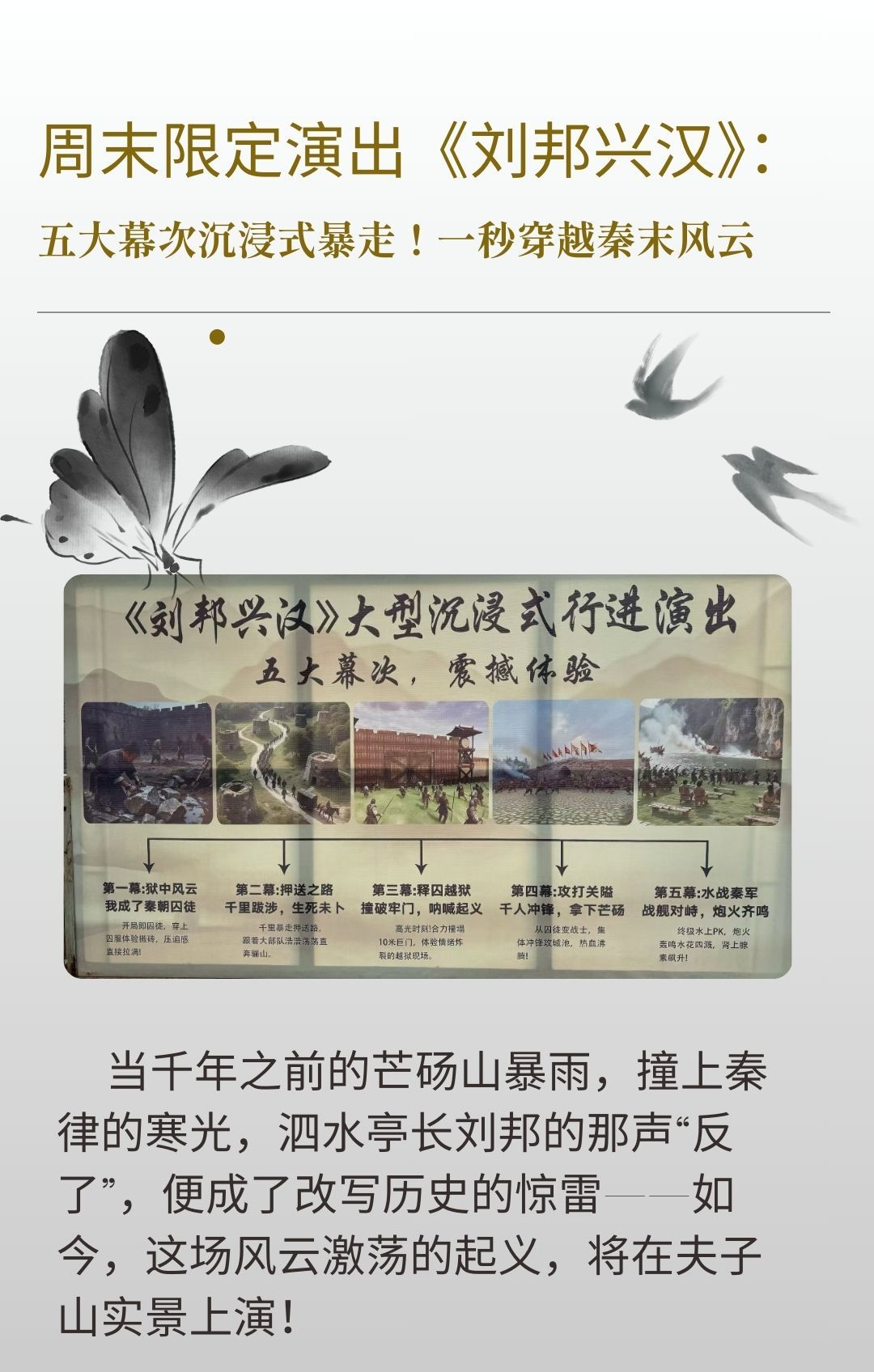 周末限定演出《刘邦兴汉》:五大幕次沉浸式暴走!一秒穿越秦末风云